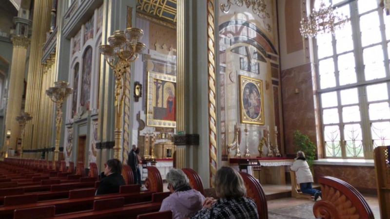 Bazylika licheńska została zbudowana w ciągu dziesięciu lat (1994-2004) w szczerym polu. Jest największym kościołem w Polsce. W ołtarzu głównym znajduje się łaskami słynący obraz Matki Bożej Licheńskiej. Ikona przedstawia Bolesną Matkę w koronie na głowie, tulącą do serca białego orła – tak jak miało to miejsce w czasie objawień. „Niewiasto, oto syn Twój”, „oto Matka twoja” – te słowa, które umierający Chrystus skierował do Maryi i do swojego ucznia Jana (które kieruje również dzisiaj do każdej i każdego z nas) często można usłyszeć w bazylice. Licheńska Pani przyszła z nieba ponad półtora wieku temu, aby przypomnieć, co jest w życiu najważniejsze. Również dziś – tak jak kiedyś, na weselu w Kanie – mówi do nas: „zróbcie wszystko, cokolwiek wam powie Mój Syn”. Spod małego kościoła wyjechały dwa busy- razem 23 osoby z ks. Proboszczem Stefanem. Drogą towarzyszyła nam modlitwa- Godzinki ku czci Matki Bożej, śpiew pieśni. Każdy miał swoje intencje , które chciał polecić Maryi. Również modliliśmy się za całą parafię. Do Lichenia przybyliśmy około godziny 10.30. W oczekiwaniu na Eucharystię mogliśmy podziwiać ten piękny obiekt. 15 minut przed godz. 12.00 rozpoczęły się powitania grup pielgrzymkowych. Wśród innych grup została przez Księzy Marianów powitana i nasza grupa z parafii Św. Barbary w Walimiu. O 12.00 rozpoczęła się Msza Święta – nasz ks. Proboszcz wraz z innymi księżmi odprawiał przy ołtarzu głównym Mszę Świętą w intencji parafii i naszych próśb. Było ponad 20 kapłanów którzy przybyli tutaj wraz ze swoimi grupkami z całej Polski.