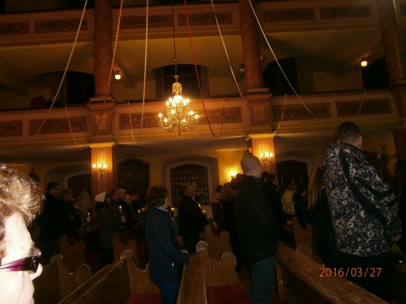 A gdy kapłan po dojściu do ołtarza trzeci raz pokazuje światło Chrystusa, zapalają się wszystkie światła.